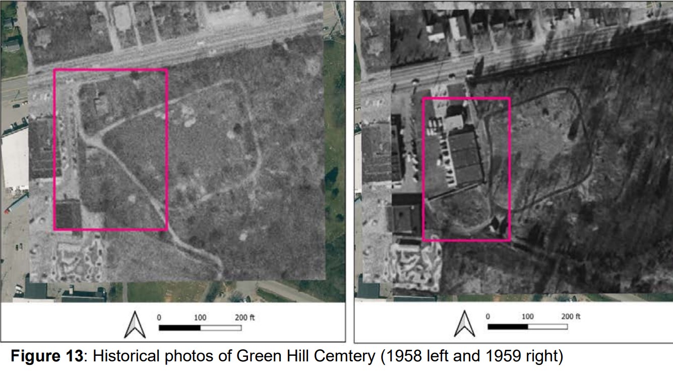 Evidence of "Lost" History: The report utilized aerial photography from 1958 and 1959 to show that a significant portion of the cemetery was destroyed for commercial strip-mall development. The current data helps identify where those damaged boundaries lie today.