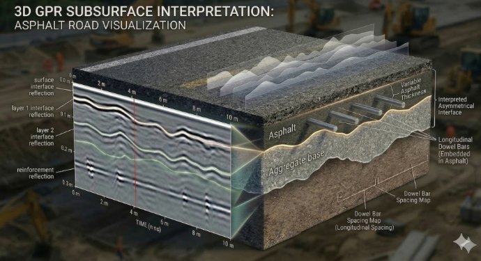 These systems are designed to measure material thickness and detect problems with water drainage and washout, utility locations, and damages along miles of roadway.